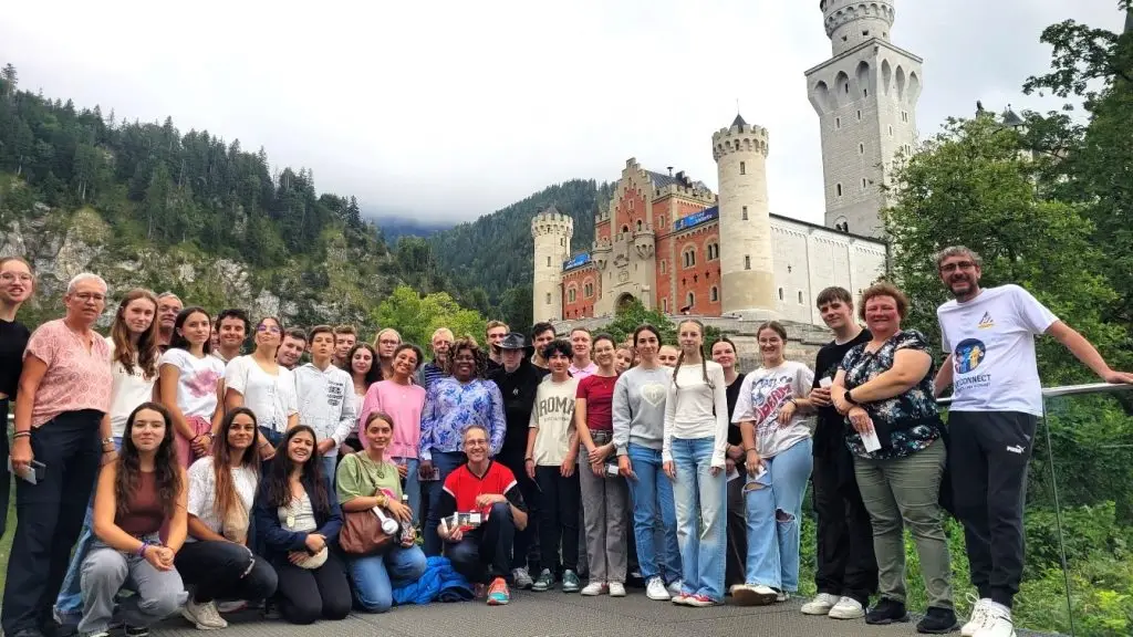 Au programme : un mélange de découvertes culturelles et d’activités ludiques et sportives. Lors d’un rallye en petits groupes mixtes les 30 jeunes ont d’abord exploré ensemble Gerstetten, la ville d’accueil. Des excursions plus longues les emmenaient ensuite à Ulm avec son riche patrimoine historique et – point fort des visites – à l’emblématique Château Neuschwanstein en Bavière (voir photo).