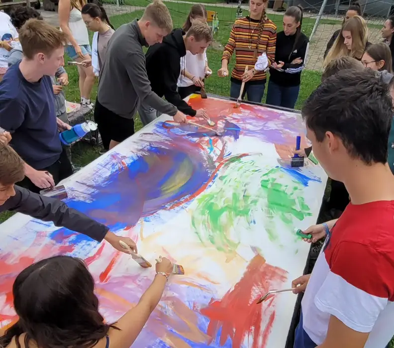En guise de souvenir de cette belle rencontre amicale, les jeunes des trois pays ont montré beaucoup de créativité en réalisant ensemble une grande toile.